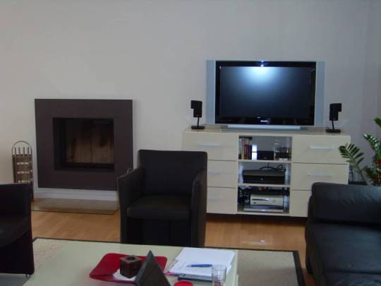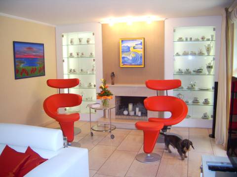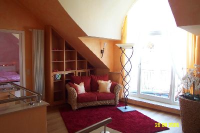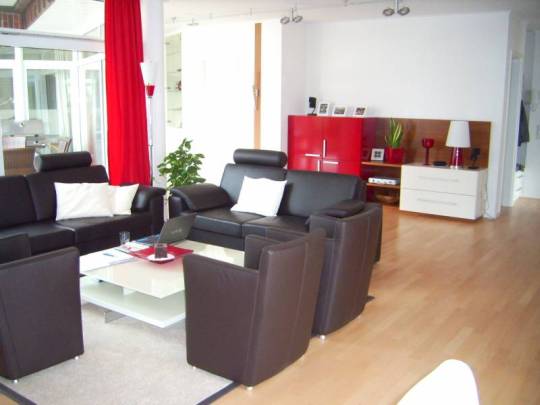 7.Hell, modern und mit viel Athmosphäre, ein Wohnraum mit Lederpolstern und dazu