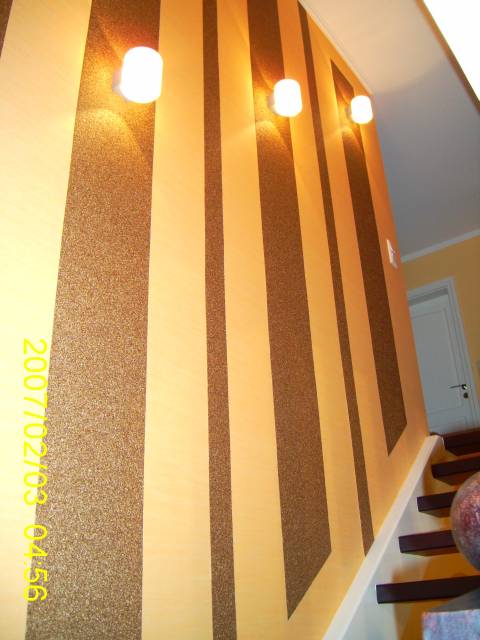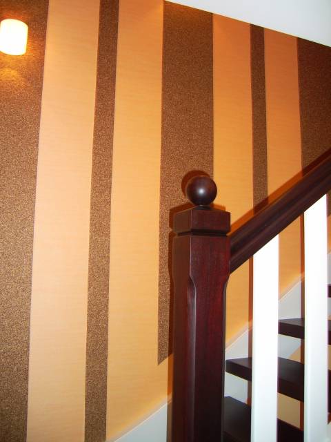 9. Ein schmales Treppenhaus wurde hier mit exclusive Tapeten versehen und mit Designleuchten bestückt.