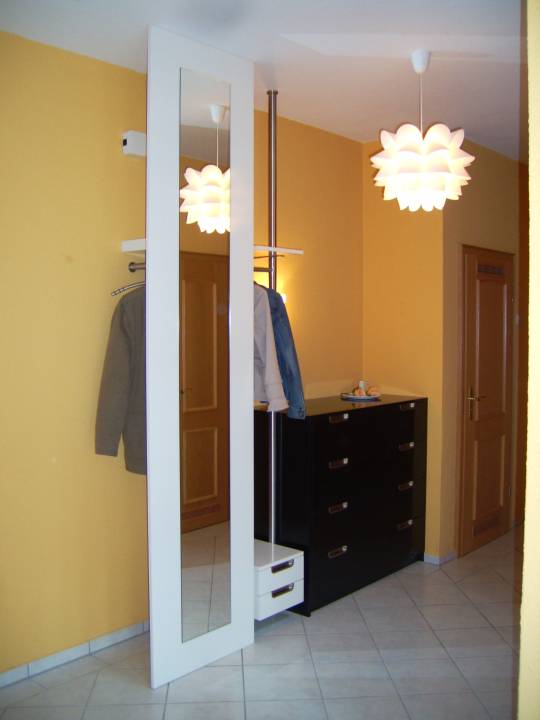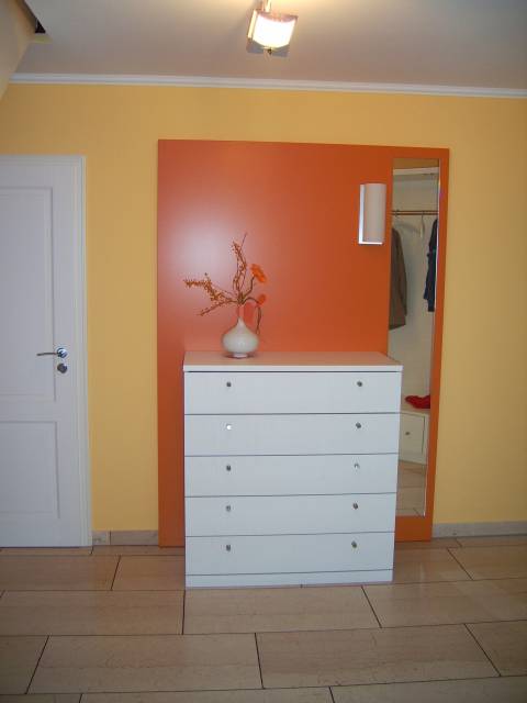 10. Eine geräumige und doch leicht wirkende Garderobe, gefertigt aus MDF Platten und farbig lackiert, ein Schmuckstück für jede Diele.