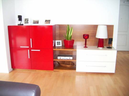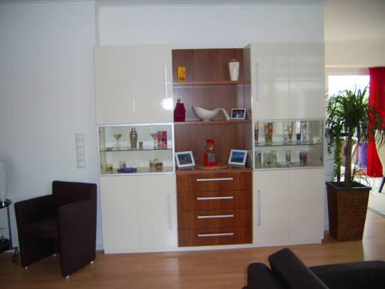 11. Beispiele für moderne, farbefrohe und doch elegante Wohzimmermöbel.Zur Verarbeitung kamen neben Lack hochwertige Hölzer, wie Nussbaum und Zebrano.