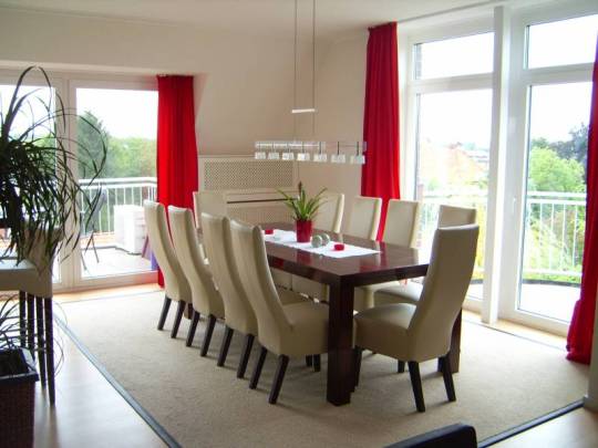 Der lange Tisch ist geradezu prädestiniert dazu, mit Freunden zu speisen.
