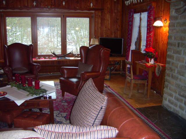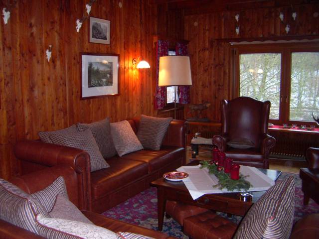 12. Draussen Schnee und Kälte, drinnen gemütliche Ledermöbel, Kaminfeuer und ein gutes Glas Wein. Erholung pur in diesem Ferienhaus.